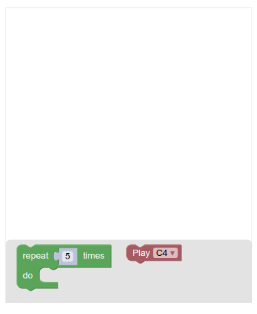 Since this is a music maker app, we want a block that plays sounds. We could create one block per sound, but instead we will create a single block with a dropdown to select which note to play: