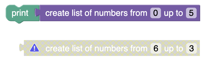 In this codelab, you'll create a new custom block type that generates a list of numbers counting up within a given range. The block will validate itself and display a warning if the first number in the range is greater than the last number: